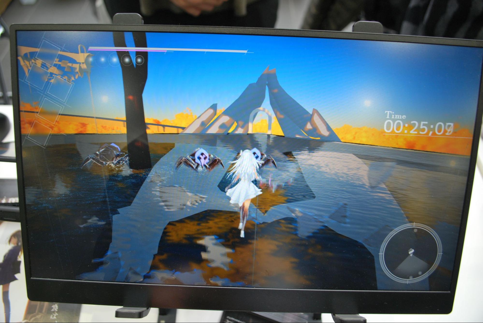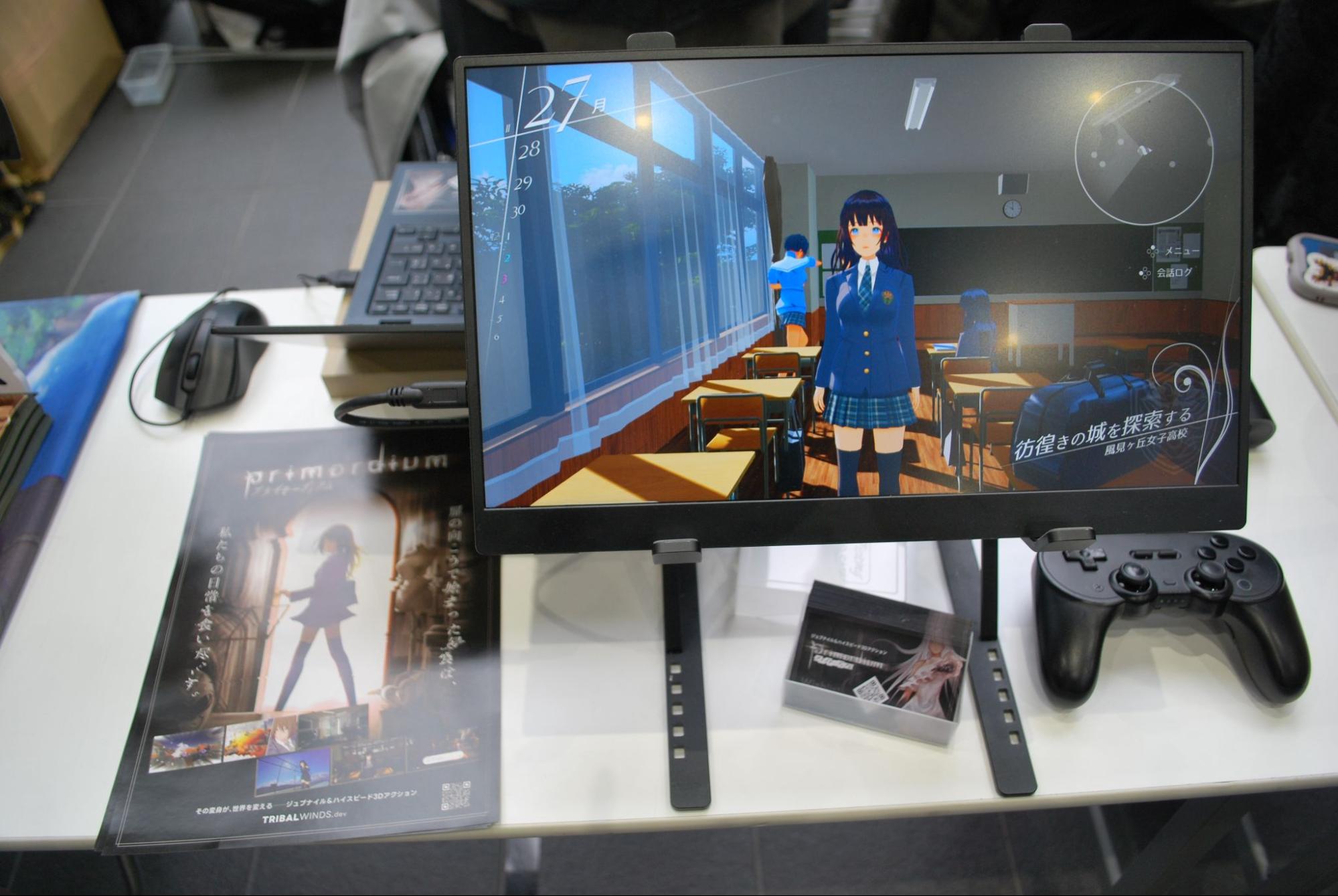 透明感のあるビジュアルが目を惹いたのが、柏ヰハヤト氏が開発中の『プライモーディアム』。変哲もない女子学生「大須賀白帆」が異能に目覚めて戦うという、学園生活とハイスピード3Dアクションを組み合わせた作品となっている。