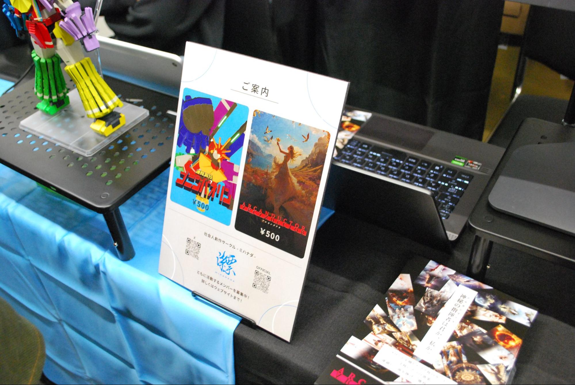 福岡を拠点とするゲーム制作サークル・ミハナダのブースでは、ロボット操縦アクションゲーム『連隊責任ゴニンバオリン』と、タロットカードを使用した2人対戦ボードゲーム『アルカンダクタ』の2作品が展示されていた。