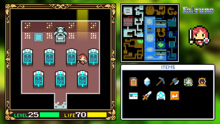 また、本作では戦闘と並行してマップの探索と謎解きも展開。基本的にどこから攻略していけばいいのかと言った指示は僅かしか示されず、自力で攻略していくことが求められる。探索と並行してアイテムが手に入ることもあるが、その説明は最小限で、実際に使ってみないと効果が分からない手探り仕様。まさに古き良き時代のアクションRPGを踏襲した、プレイヤーの観察眼と試行錯誤する執念が要されるものになっている。