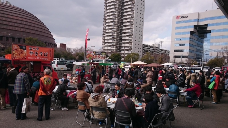 屋外にはキッチンカーと飲食スペースが用意されており、お昼には多くの人で賑わっていた。