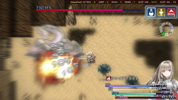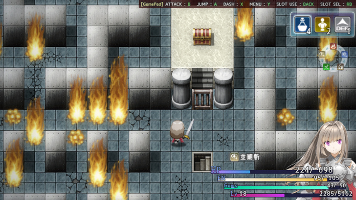 なお、本作はRPGツクールMV製で、執筆時現在はRPGアツマールにてブラウザゲームとして公開されている。ブラウザ動作だがゲームパッドにも対応、逆にスマートフォンでのプレイは対応してはいるもののPCでのプレイが強く推奨されている。(そのくらいアクションゲームとして本格的な内容ということでもある。)