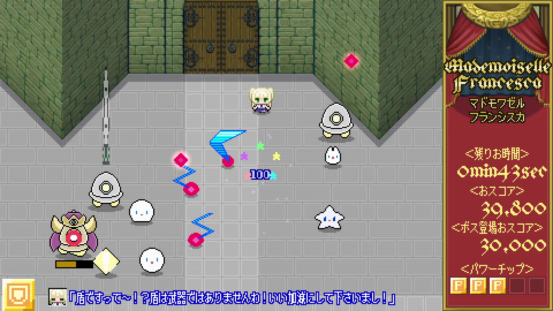 本作の魅力は思いのほか歯応えのある難易度である。お嬢様が“おアックス”で宇宙人と戦う設定からして、コミカルで気軽に楽しめる内容を想像するかもしれない。だが、実際はプレイヤーの集中力と反射神経を試す本格的なアクションゲームになっている。