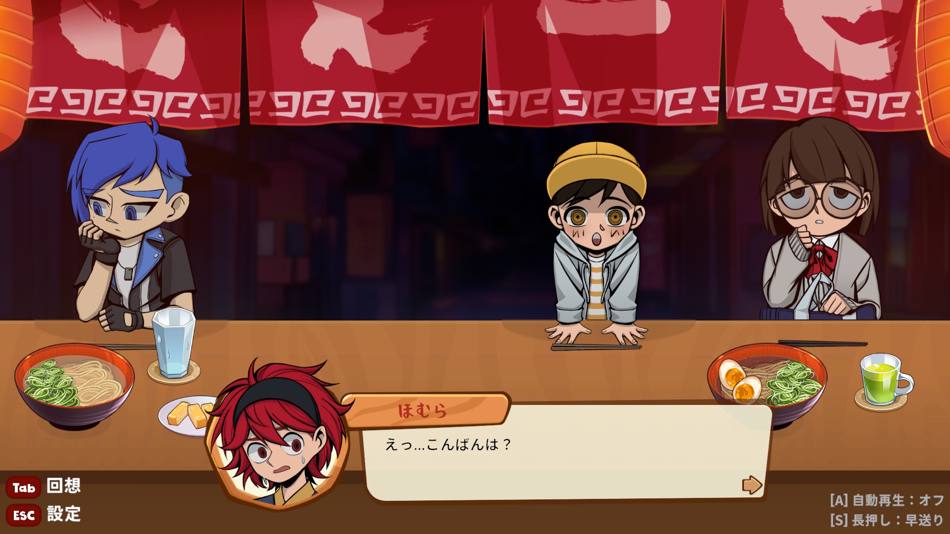 ゲームデザインとストーリーの表現法から、インディーゲームに慣れ親しんでいるプレイヤーは『VA-11 Hall-A ヴァルハラ』、『コーヒートーク』が脳裏を過るかもしれないが、概ねそんな感じである。身も蓋もないことを言えば、それらのラーメン版である。